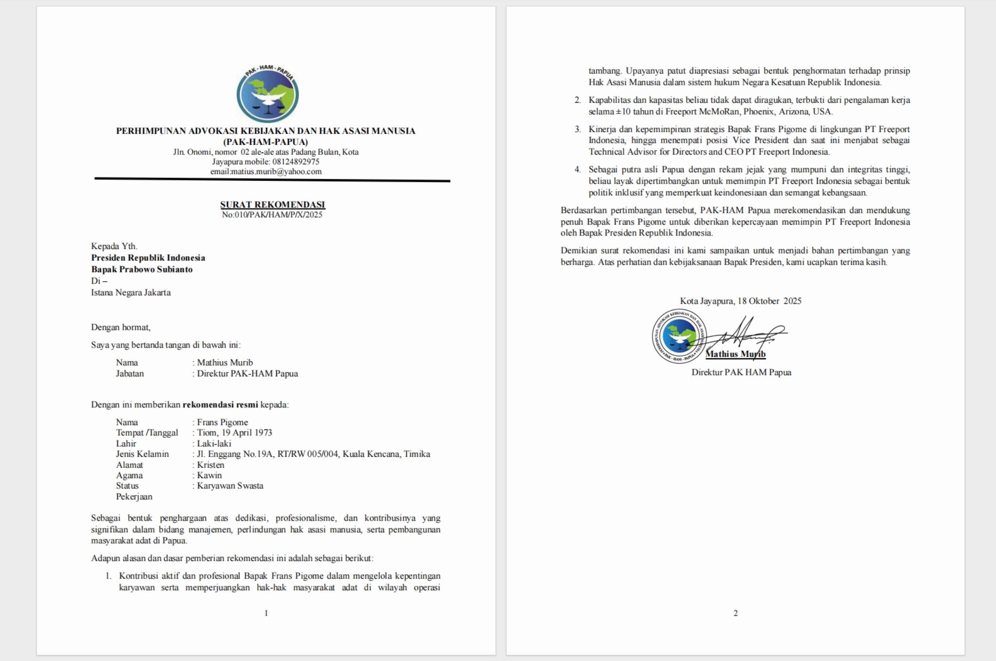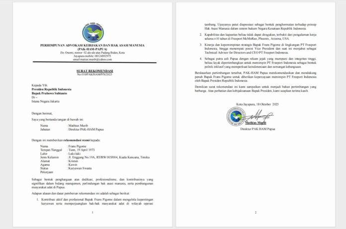 DARI PERHIMPUNAN ADVOKASI KEBIJAKAN DAN HAK ASASI MANUSIA (PAK-HAM-PAPUA)
