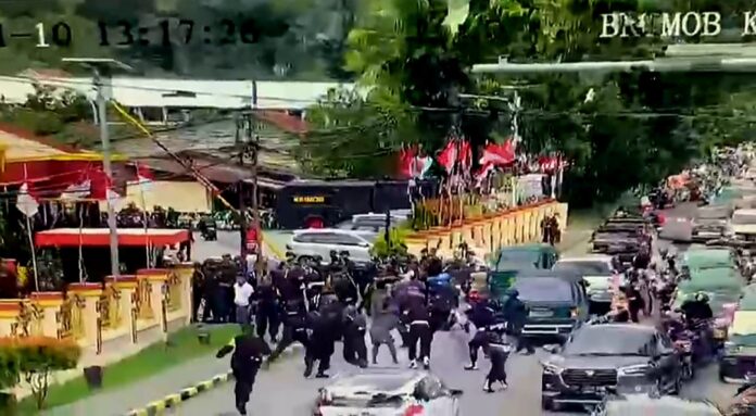 Dari video CCTV di lampu merah Brimob, terlihat dengan jelas simpatisan Gubernur Lukas Enembe melakukan penyerangan terhadap aparat yang sedang mengatur lalu lintas juga yang berjaga-jaga disekitar Markas Brimob (Mako) Brimob, Kotaraja, Kota Jayapura.