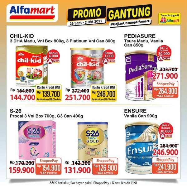 Selain itu, Alfamart pun memberikan promo gajian saat memasuki akhir bulan, yaitu Promo Gantung atau Gajian Untung. Untuk promo JSM Alfamart 30 September sampai 2 Oktober ini, juga masuk dalam promo Alfamart gantung mulai akhir bulan September 2022.