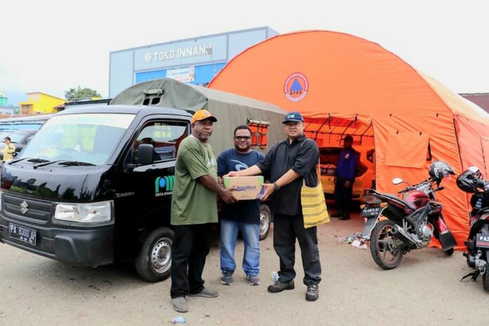 Jayapura, Mambruks.com – Perusahan Daerah Air Minum (PDAM) Jayapura, serahkan bantuan 100 karton Air Minum Dalam Kemasan (AMDK) Robongholo kepada korban kebakaran di Pasar Pharaa Sentani, Sabtu (7/1).
