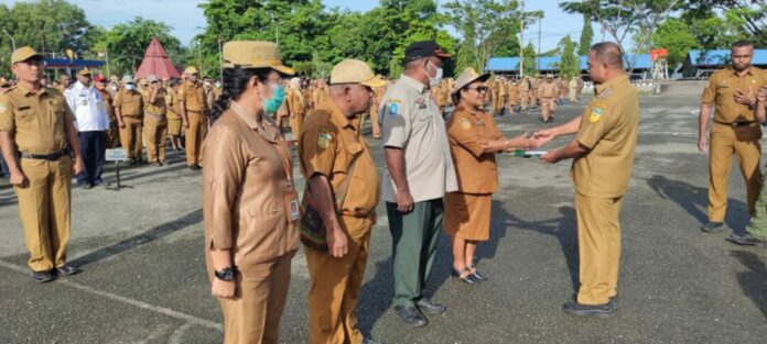 Sentani, Mambruks.com – Penjabat (Pj) Bupati Jayapura Triwarno Purnomo, menyerahkan Dokumen Pelaksanaan Anggaran (DPA) Tahun Anggaran 2023 kepada masing-masing Organisasi Perangkat Daerah (OPD) di lingkungan Pemeritah Kabupaten (Pemkab) Jayapura, bertempat di Lapangan Apel Kantor Bupati Jayapura, Gunung Merah, Sentani, Kabupaten Jayapura, Senin ( 16/1).
