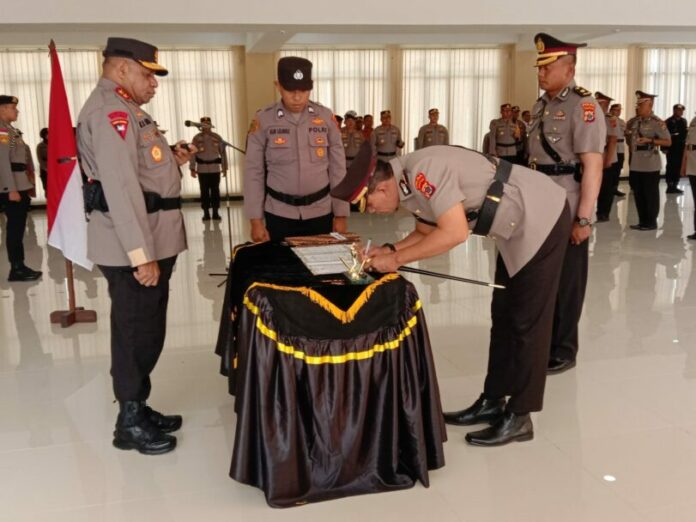 Jayapura, Mambruks.com – Kepala Kepolisian Daerah atau Kapolda Papua, Irjen Mathius D Fakhiri, memimpin serah terima jabatan (Sertijab) 3 Kepala Kepolisian Resor (Kapolres) di Papua. Serah terima jabatan itu berlangsung di Mapolda Papua, Koya Koso, Kota Jayapura, Jumat (17/2).