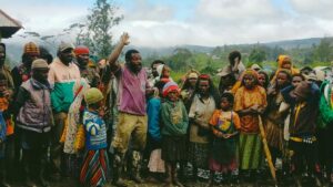 Momen penyerahan sumbangan 10 ekor babi tersebut juga dimeriahkan dengan Waita bersama Meki Mote bersama Keluarga besar Mote dan Keluarga besar Dogopia dan simpatisan lainnya di Halaman Gereja Ibodiyo.