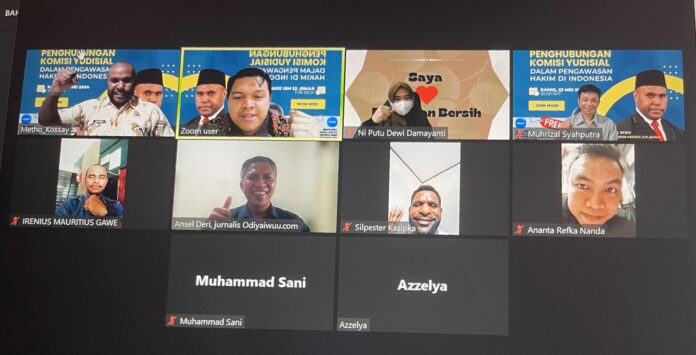 Jayapura, Mambruks.Com– Intelektual muda tanah Papua sekaligus Koordinator Penghubung Komisi Yudisial RI Wilayah Papua Dr Methodius Kossay, SH, M.Hum, CMP,CT, Kamis (23/5) meluncurkan buku karyanya berjudul Dinamika Penghubung Komisi Yudisial dalam Pengawasan Hakim Di Papua dalam diskusi secara virtual yang dipandu Gigih selaku Direktur Komunitas Melek Politik, Jakarta.
