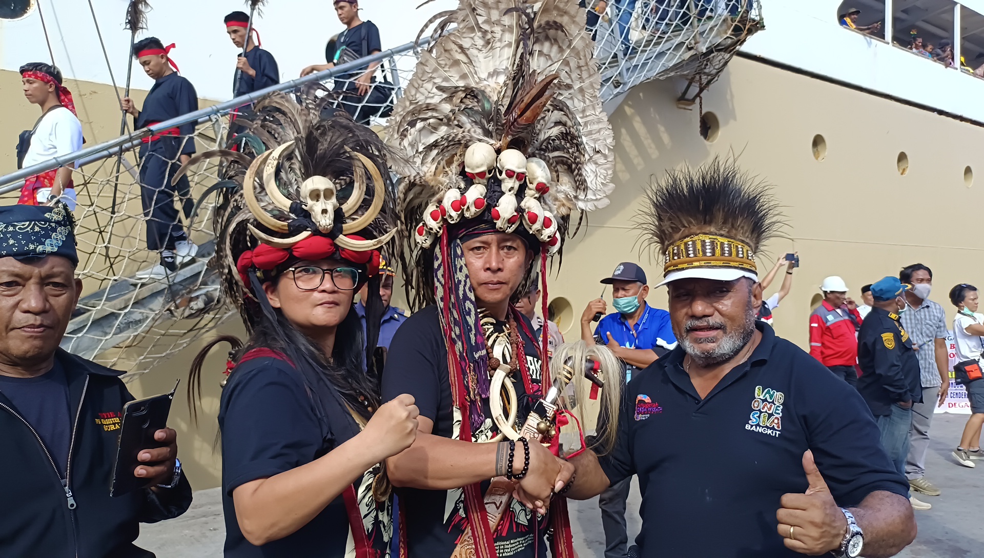 Jayapura, Mambruks.Com-Sebanyak 412 peserta Kongres Masyarakat Adat Nusantara (KMAN) VI yang menumpangi Kapal Pelni Sinabung, tiba di Pelabuhan Jayapura, Kamis (20/10).